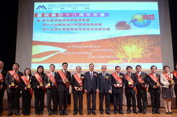 傑出経営者に企業管理品質及びパフォーマンス向上に努めてもらうよう、また彼らが企業経営及び国家経済発展への貢献を表彰するため、社団法人中華民国企業経理協進会が毎年「国家傑出マネージャー賞」の表彰式を行っています。先日に第 29 回の表彰リストが公開され、当社の中国子会社の昆山中辰矽晶社長金敬長が「傑出台商社長」賞を受賞しました。 12 月 15 日に総統府に招いて馬英九総統と接見し、12 月17 日の表彰式で当協進会の主任委員高孔廉より授与されました。