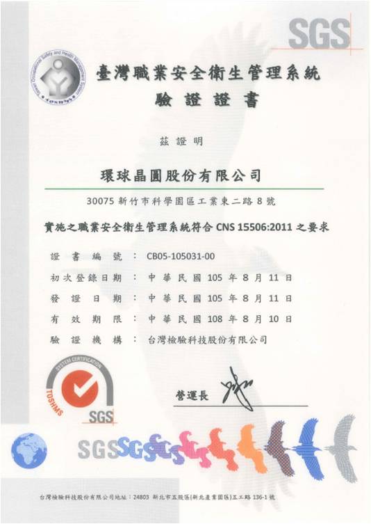 2016/08 TOSHMS/CNS 15506:2011台灣職業安全衛生管理系統通過驗證