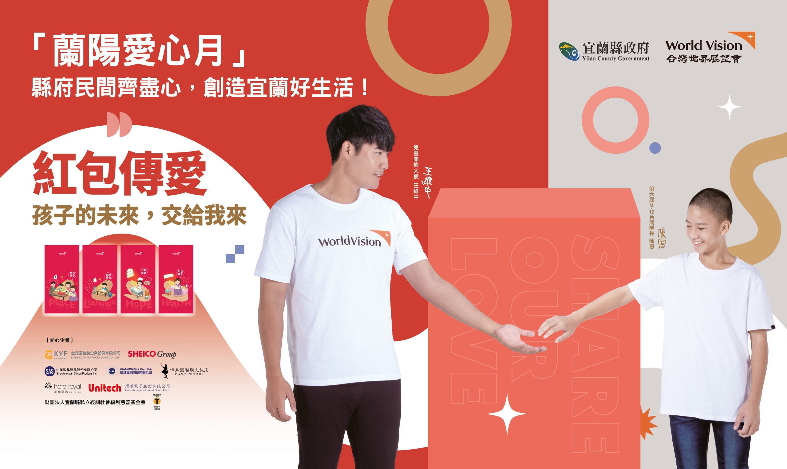 為關注經濟弱勢兒少的困境,台灣世界展望會於春節前夕發起「紅包傳愛」,邀請宜蘭縣政府及在地愛心企業,一起以愛傳遞愛,響應「紅包傳愛-孩子的未來,交給我來」,為宜蘭在地的 1,500 名兒童募集助學、健康、平安、希望紅包,為弱勢兒少實現穩定上學、吃飽,安心築夢等新年心願。